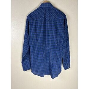 Wrangler Vintage M Western Shirt Pearl Snap Plaid Blue Long Sleeve Button Up