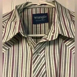 Wrangler Vintage Pearl Snap Button Down Shirt Long Sleeve Stripe Western READ