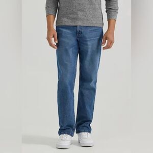Elevate your western style with these Wrangler Jeans in a classic blue color. Made with heavyweight denim and a relaxed fit, these cowboy cut jeans are perfect for any season. The 5-pocket design features a zip closure and Wrangler logo accents for added style.