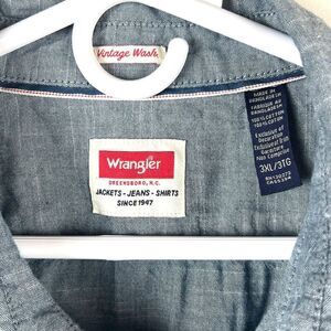 Wrangler Vintage Wash Men's Gray Long Sleeve Button Up Rivet Button Shirt 3XL