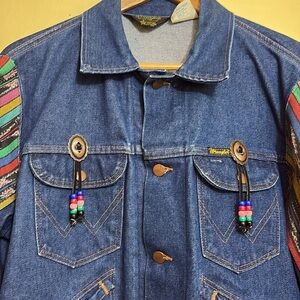 Wrangler | Vintage Western Denim Aztec Serape Concho Native American Jacket 42