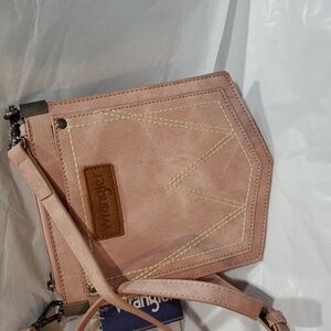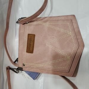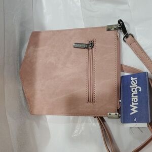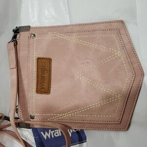 Wrangler "W" Stitch Water Repellent blush rose light pale pink Denim Pocket Crossbody bag new