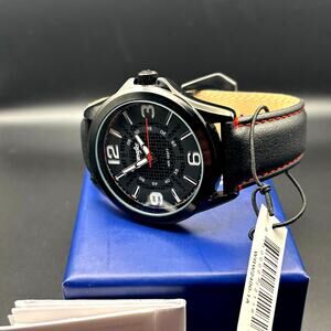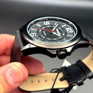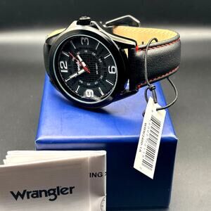 Wrangler WRW2400-1A Mens Black Analog Watch Black Leather Red Stitching Strap