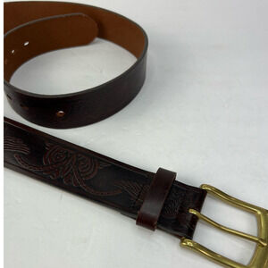 Wrangler Western Belt Men 36 Waist Brown Leather Embossed Design Vintage 36W
