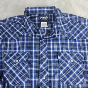 Wrangler Western Blue Plaid Pearl Snap Long Sleeve Cowboy Shirt Sz 2XL
