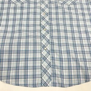 Wrangler Western Blue Plaid Pearl Snap Short Sleeve Shirt Men’s 2XL Cowboy Rodeo