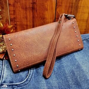 Wrangler Western Cow-Print Tri-fold RFID Wallet/Wristlet Detachable Credit Card