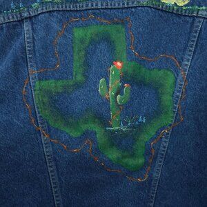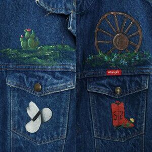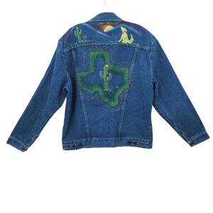 Wrangler Western Denim Jacket Womens Size L DIY Hand Painted Texas Cactus Boot