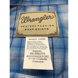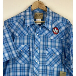 Wrangler Western Fashion Pearl Snap Shirt Men's 2XL BIG Blue Plaid NWT