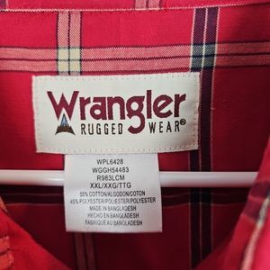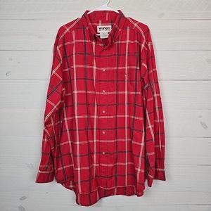 Wrangler Western Men's XXL Red Plaid Rugged Wear Long Sleeve Button Up