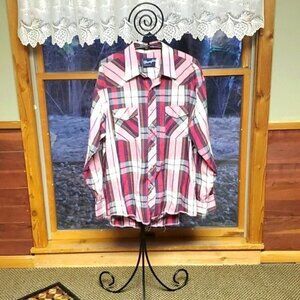 Wrangler Western Pearl Buttoned Long Sleeve Red Plaid Casual Sz. XL Shirt
