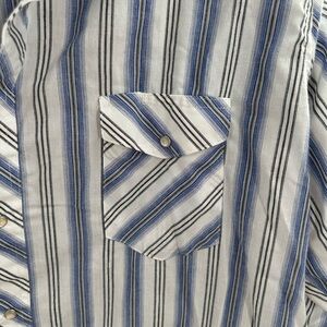 Wrangler Western Pearl Snap Blue & White Button Down Shirt
