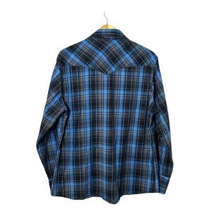Wrangler Western Pearl Snap Plaid Shirt Blue Gray Men’s Large