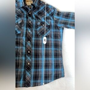 SEO Tags: Wrangler pearl snap shirt, cowboy western plaid, rodeo country style shirt, Wrangler snap button shirt, men’s plaid western top
