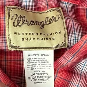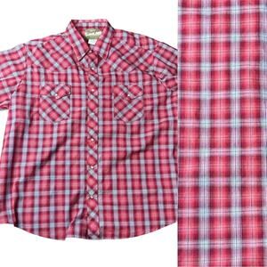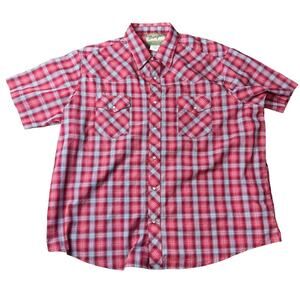 Wrangler Western Pearl Snap Plaid Short Sleeve Shirt Size 2XL Red Blue White