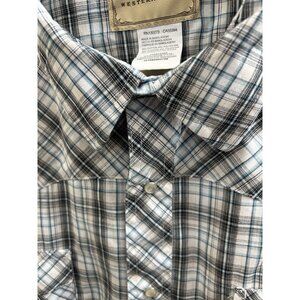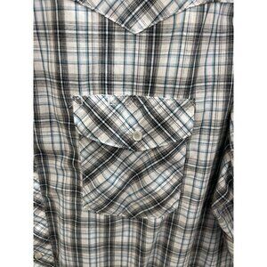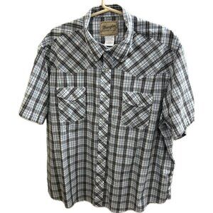 Wrangler Western Pearl Snap Shirt Mens 2XL Blue Plaid Short Sleeve Cowboy