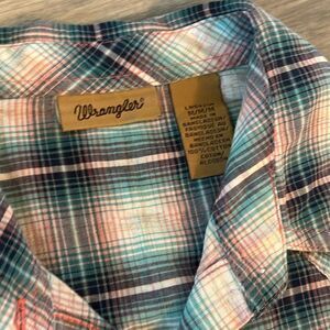 Wrangler Western Plaid Blue Pink Snap Button Front Shirt