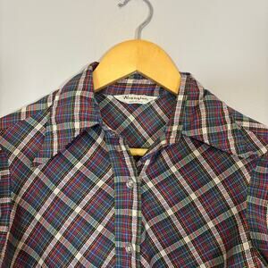 Wrangler Western Plaid Button Down Shirt Retro 70s Style Top | Dark Autumn