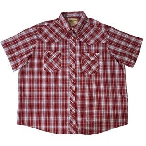Wrangler Western Red Plaid Pearl Snap Cowboy Shirt Short Sleeve Mens Size 2XL