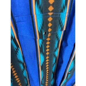 Wrangler Western Shirts Mens Button Down Shirt Blue Orange Aztec Size L Collared