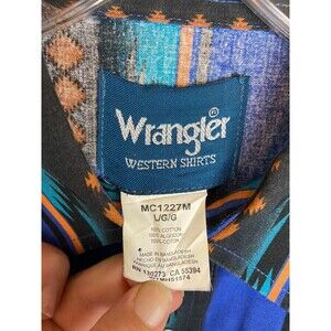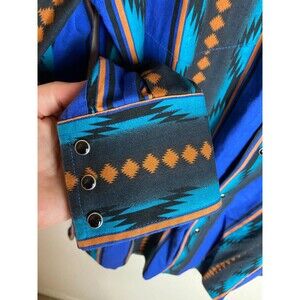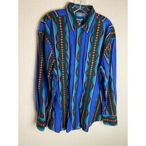 Wrangler Western Rodeo Shirts Mens Button Down Shirt Blue Aztec Size L Collared