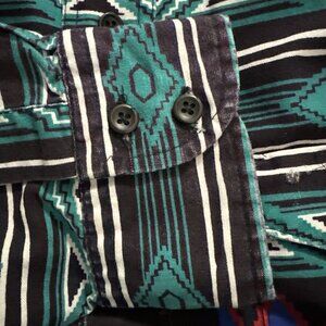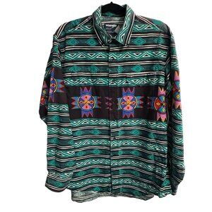Wrangler Western Shirt Mens Large 17-35 Geometric Aztec Cowboy Cut USA