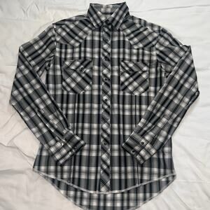 Wrangler Western Shirt Mens Size S Black White Plaid Snap Buttons Retro Cowboy