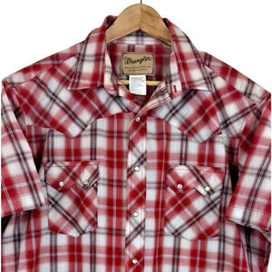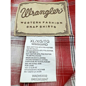 Wrangler Western Shirt Men's Size XL Pearl Snap Red Metallic Plaid Country Fit