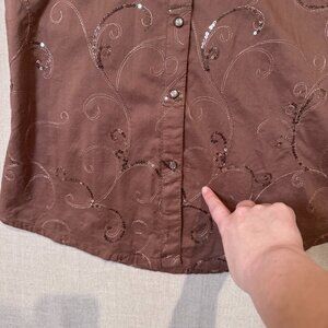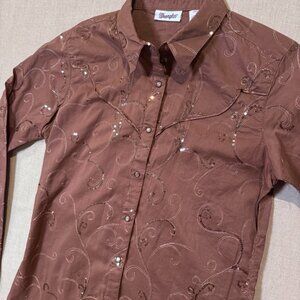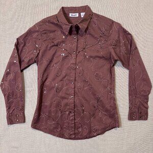 Wrangler Western Shirt Women’s Small Brown Sequin Embroidered Pearl Snap Rodeo