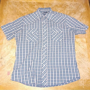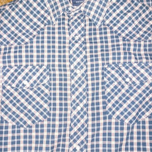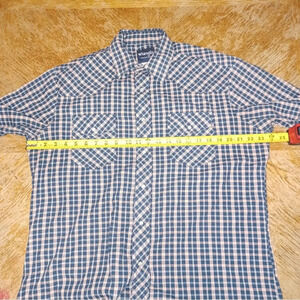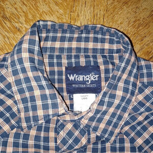 Wrangler Western Shirts Size Large Plaid Pearl Snap Button Down Rancher Blue see pictures for reference and measurements