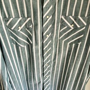 Wrangler Western Snap Shirt Green White Striped Long Sleeve Pearl Snap XL