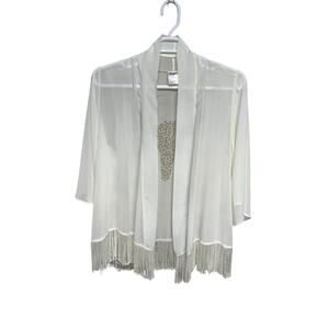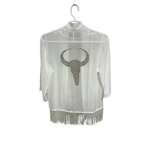 Wrangler Women’s Western Style Sheer Kimono with Gold Silver Studded Steer Head and Fringe Size Medium