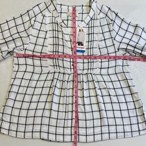 Wrangler White/Black Plaid Popover Blouse, 3/4 Sleeves, Large, NWT