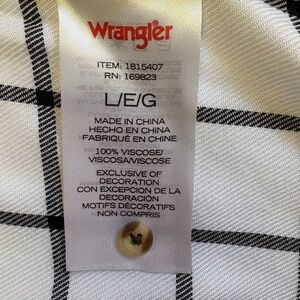 Wrangler Ladies' Plaid Bracelet Sleeves 3/4 Sleeve White/Black Plaid Popover Blouse Large, NWT