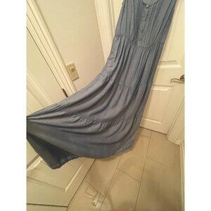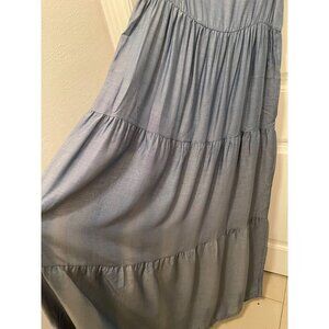 Wrangler Womens Blue Rayon & Tencel Tiered Maxi Dress M FADE