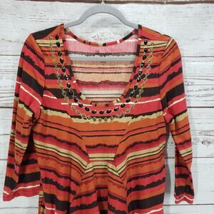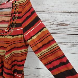 Wrangler Women's Cotton Blend Beaded Striped Long Top Size Large