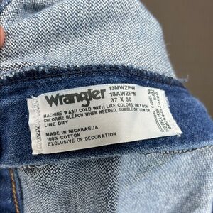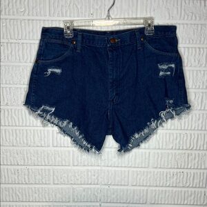 Chic Wrangler shorts with frayed hem. Dark blue denim for a bold look. Perfect for casual wear.
