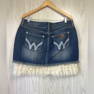 Wrangler Womens Jean Skirt Mini Denim Lace Ruffle Size 13 Grunge Lace & Denim NWOT