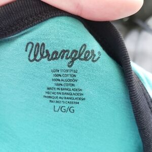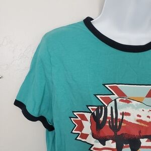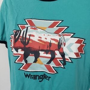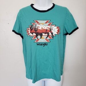 Wrangler Women's Large Turquoise Blue Short Sleeve T-shirt Buffalo Aztec Top