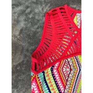 Wrangler Women's Lattice Collar Sleeveless Colorful Printed A-Line Dress size Large Cowgirl.