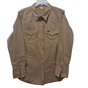 Wrangler Women's Long Sleeve Western Snap With Front Back Yokes Y2K Cowgirl Large Brown