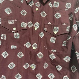 Wrangler Women's Pearl Snap Western Shirt Button Down Long Sleeve Burgundy Medium