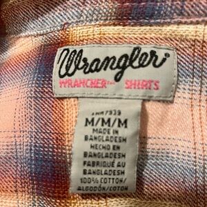 Wrangler Women’s Pink & Cream Plaid Rancher Bleached Flannel, size M