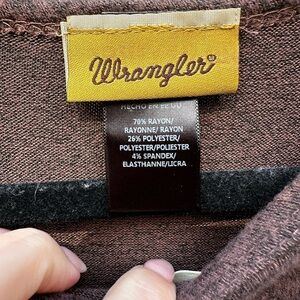 Wrap yourself in cozy chic with this stunning Wrangler poncho top. The soft heathered mauve knit drapes beautifully, creating an effortlessly stylish silhouette. Dramatic black fringe cascades down the sides and hem, adding a touch of Western flair and movement that will turn heads. Perfect for layering over your favorite jeans or leggings, this versatile piece transitions seamlessly from casual daytime outings to a stylish evening gathering.