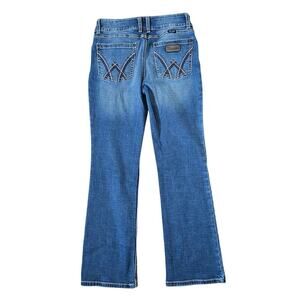 Essential Wrangler Womens Retro Bootcut Jeans. This Wrangler Retro Mae jeans gives a contemporary twist to the classic cowgirl style. They feature iconic details of the Western heritage such as the leather patch and authentic "W" stitching on the back pockets.