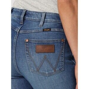 Wrangler Womens Retro High Rise Flare Denim Jeans Dark Blue Stretch Trumpet