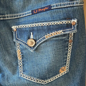 Wrangler Women’s Riding Q-Baby Jeans. Medium Wash. Contrasting Stitching. 5X34
