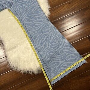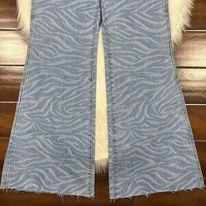 Wrangler Women's Size 28 X 32 Meow Tiger Print Wanderer 622 High Rise Flare Denim Jeans, No Stretch, Zipper Fly, Five Pockets, 100% Cotton, Raw Edge Hemlines