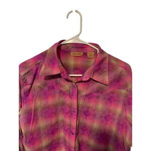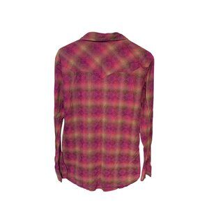 Wrangler Womens Size Large Purple Pink Plaid SNap Up Western Shirt Cowboy Long Sleeve Top