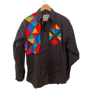 Wrangler Womens Vintage 80s Rodeo Performance Shirt Size Large Quilt Pattern